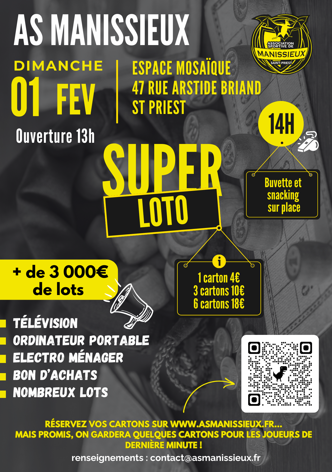 Super Loto de l’AS Manissieux – Dimanche 1 février 2026 à 14h.